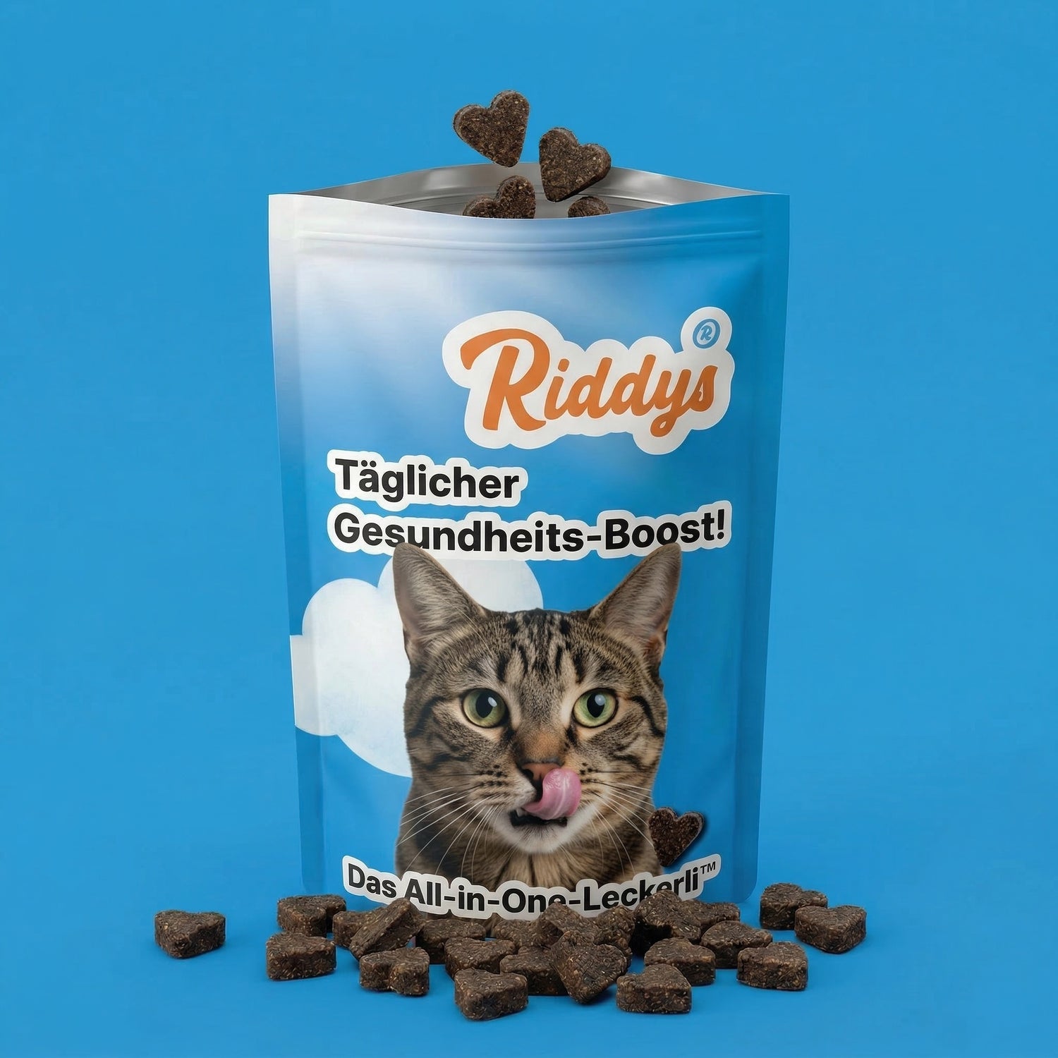 Meine Katze Luna hatte immer stumpfes, struppiges Fell. Ich habe alles probiert – teures Futter, Öle, Zusätze im Napf. Nichts hat geholfen. Nach 4 Wochen Riddys glänzt ihr Fell wie neu. Meine Freundinnen fragen mich ständig was ich anders mache.